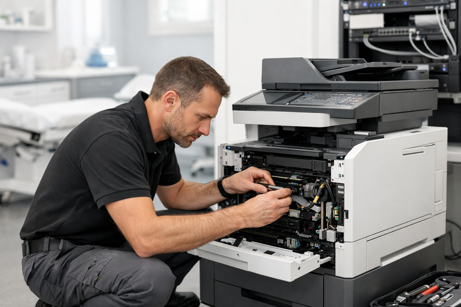Lexmark Betreuung Unternehmen ist dann hochwertig, wenn sie nicht beim Drucksystem endet. In Arztpraxen, MVZs und Dialysezentren hängen Ausdrucke, Etiketten, Befunde, Scanprozesse und digitale Ablagen direkt an Patientenversorgung, Terminmanagement und Abrechnung. Deshalb ist in sensiblen Umgebungen nicht nur Verfügbarkeit wichtig, sondern auch Datenschutz, Zugriffskontrolle und dokumentierte Sicherheitsmaßnahmen.